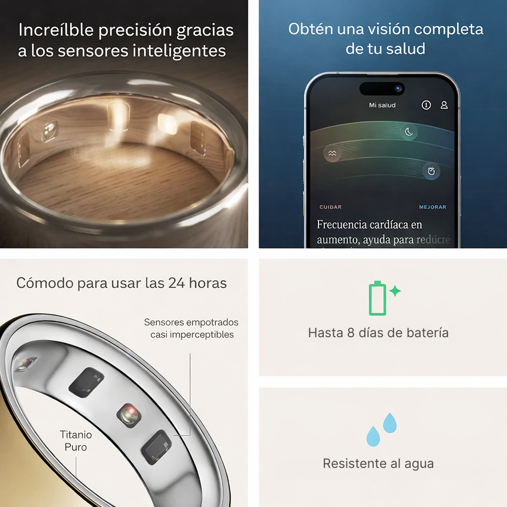 Sí. El anillo se sincroniza con una aplicación móvil gratuita, compatible con Android y iOS, donde podés ver todas tus métricas de forma clara y ordenada. La app se conecta por Bluetooth y te permite llevar un seguimiento diario de tu salud y actividad.